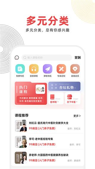 软件整合了中西医内科、静脉曲张、经方六经、舌诊经方、针灸全科、中医诊断学等多门专业学科,用户可根据自身学习需求选择薄弱环节进行针对性学习。平台不仅提供系统的中医理论知识,还配备专业名师在线答疑,支持一对一专业教学指导。此外软件收录了大量医学大师的教学视频,突破传统书本学习的局限,通过直播授课、点播回放、面授互动等多种形式,让用户能够与医学专家深入交流,快速提升专业水平。