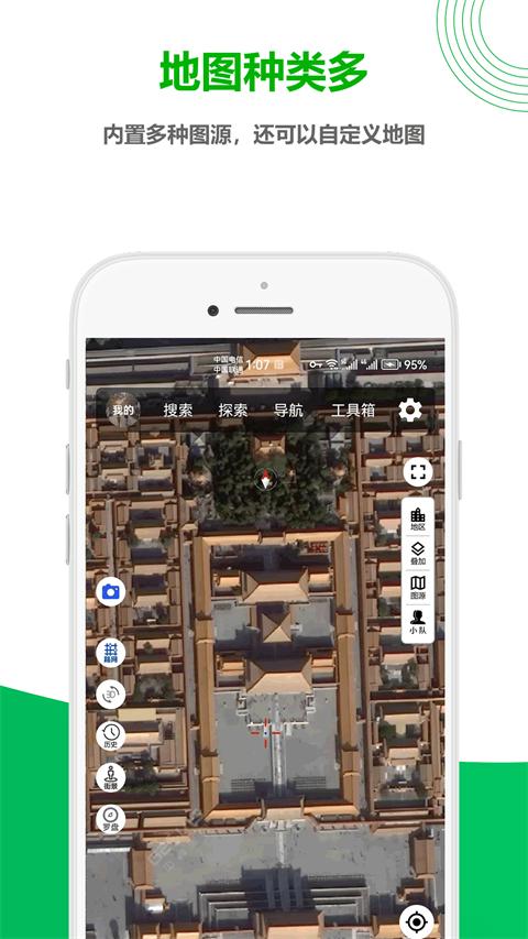 提供距离测算、面积测量、海拔查询等专业功能