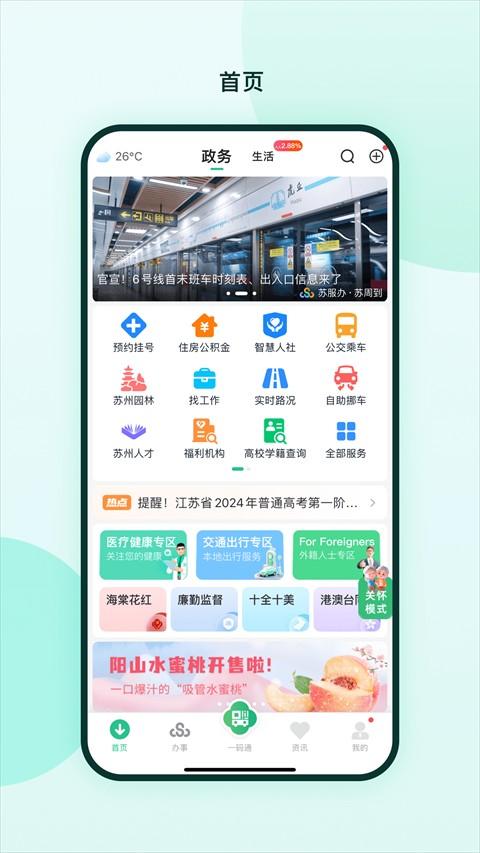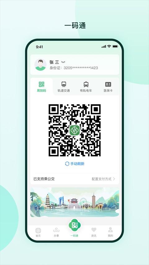 苏周到一码通app是由苏州市政府官方推出的一款综合性城市服务移动应用,该平台集中提供各类政务办理与公共服务功能,让市民能够便捷地了解苏州本地的政策动态、文化娱乐和生活资讯。用户通过手机就能完成多项业务的在线预约,大大节省办事时间,提升日常事务处理效率。应用内设智能搜索引擎,可快速定位所需信息,遇到问题也能及时获得解答,为苏州市民打造了一个高效便捷的数字化服务平台。苏周到一码通最新版还整合了公交乘车扫码、博物馆预约入馆、行政服务中心在线取号等功能,同时支持医保电子凭证、健康码、地铁乘车码等多种数字证照,真正实现"一码通城"的便捷体验。